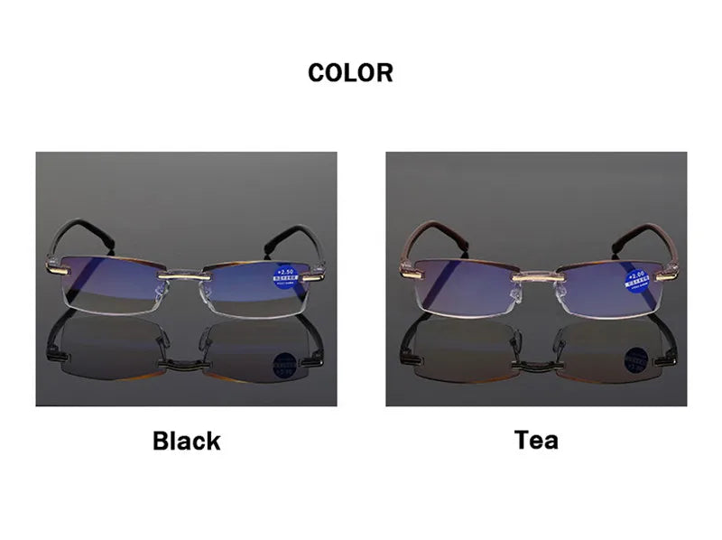 Ahora Men Rimless Reading Glasses Women Anti Blue Light Blocking Square Frameless Presbyopic Glasses Diopters +1.0 1.5 2 2.5 4.0