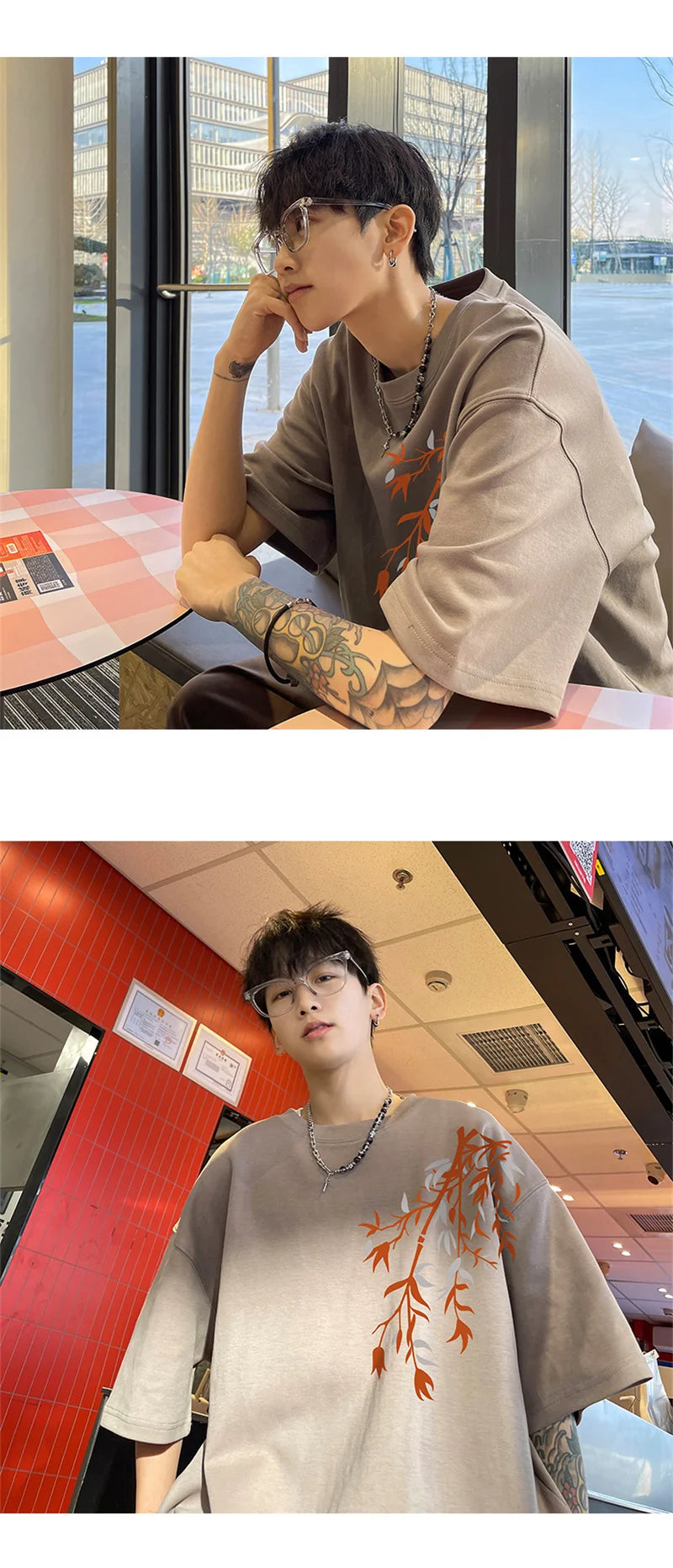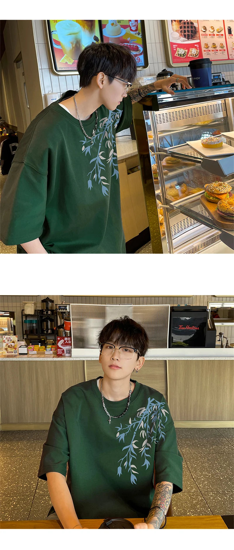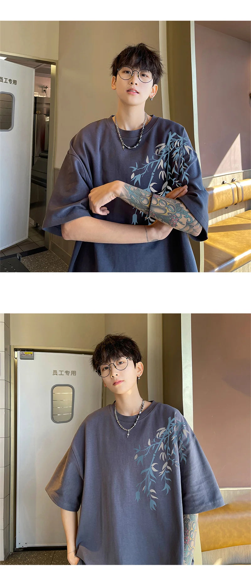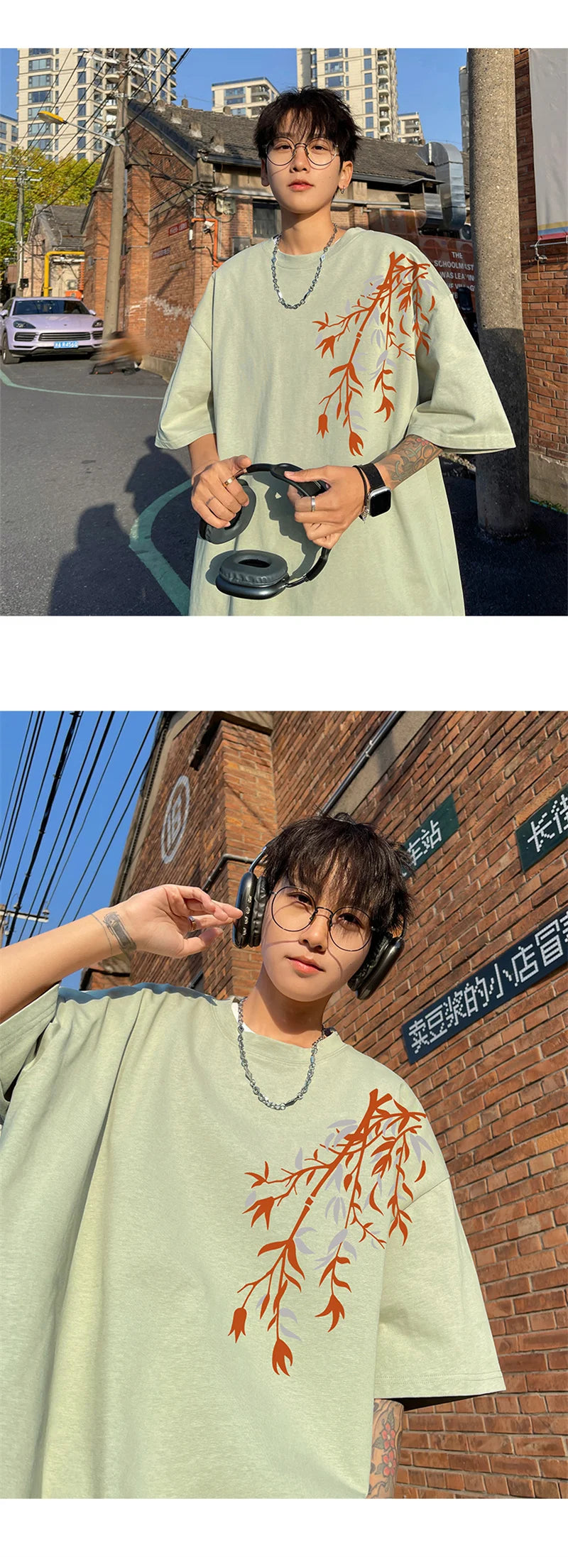 Men's Oversized T-shirts Mens Cotton T Shirt White 5XL Casual Summer Wear Fashion Bamboo Print Tee Shirts for Men Clothing