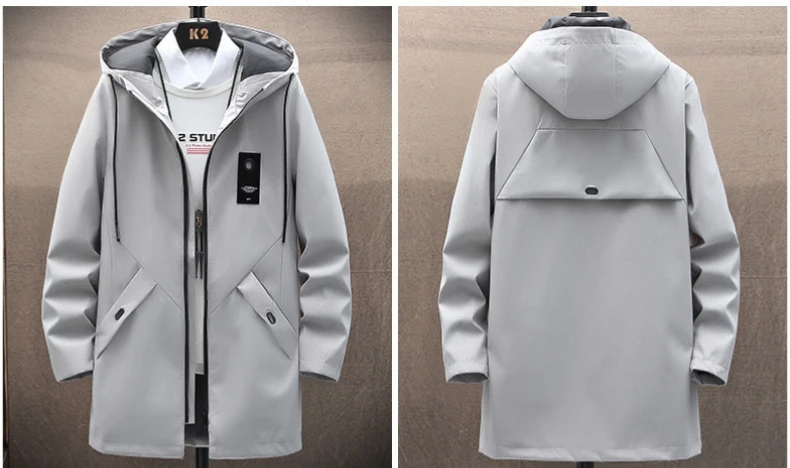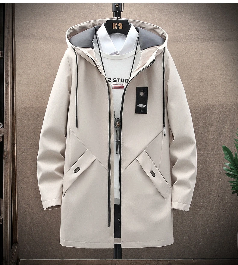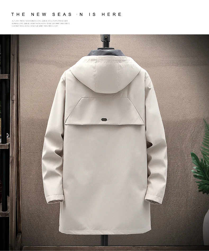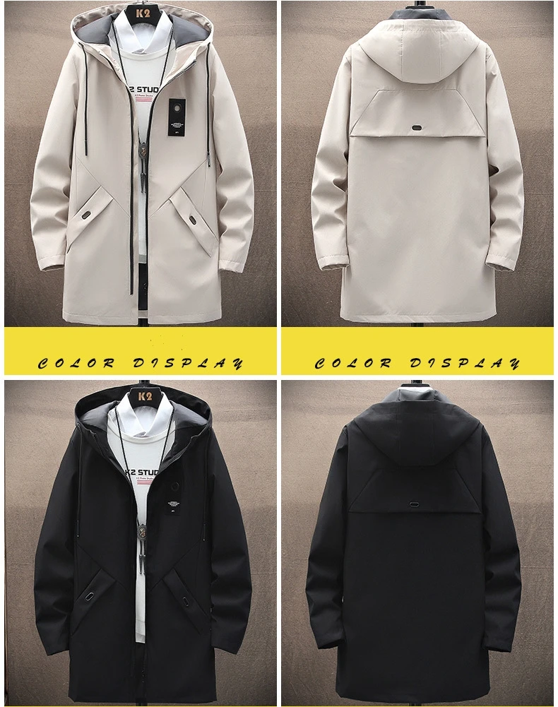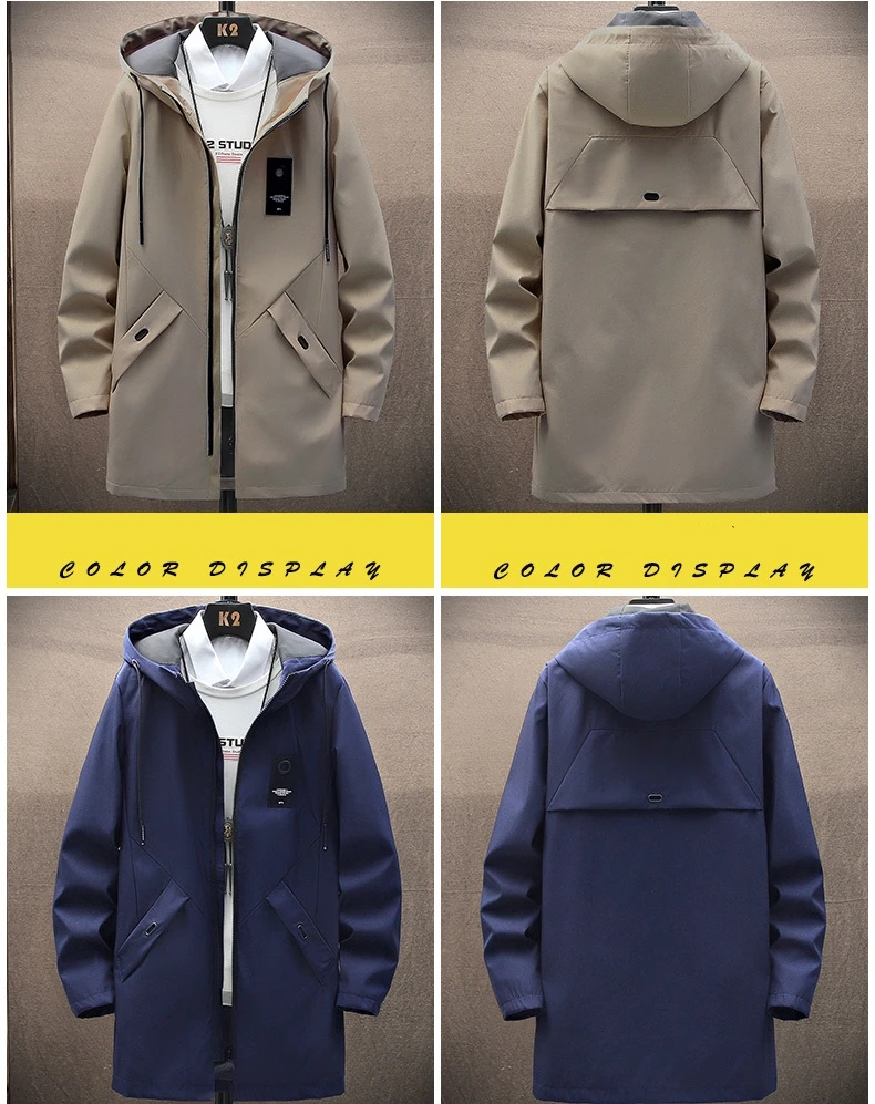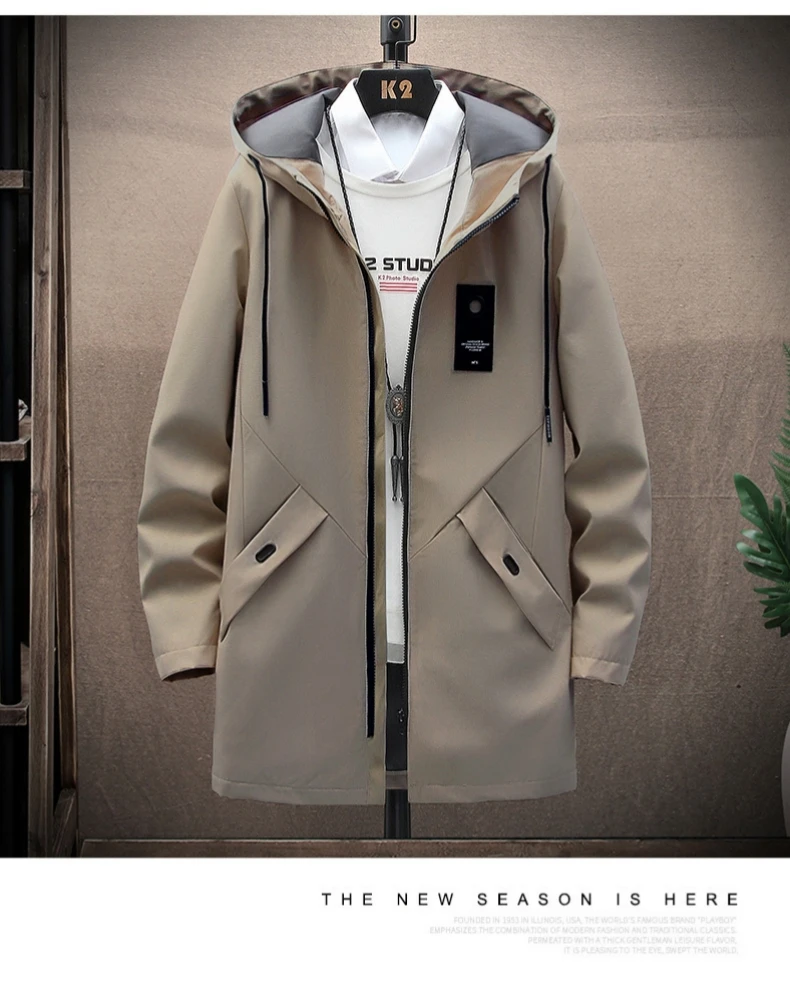 Outdoor Casual Jacket For Men Solid Color Long Windproof Hooded Coat High Quality Design Hot Casual Jacket For Men